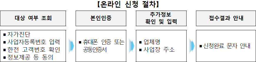 ※ 신청자명, 사업자등록번호, 전력사용 사업장 주소, 한전 고객번호 등