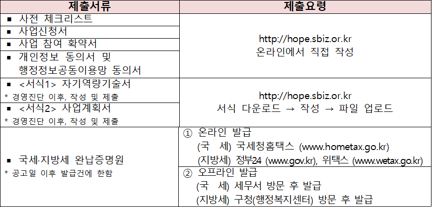 ※ 세부내용은 “2024년도 희망리턴패키지 경영개선 지원 소상공인 모집 주의사항” 사업신청 자격 참조