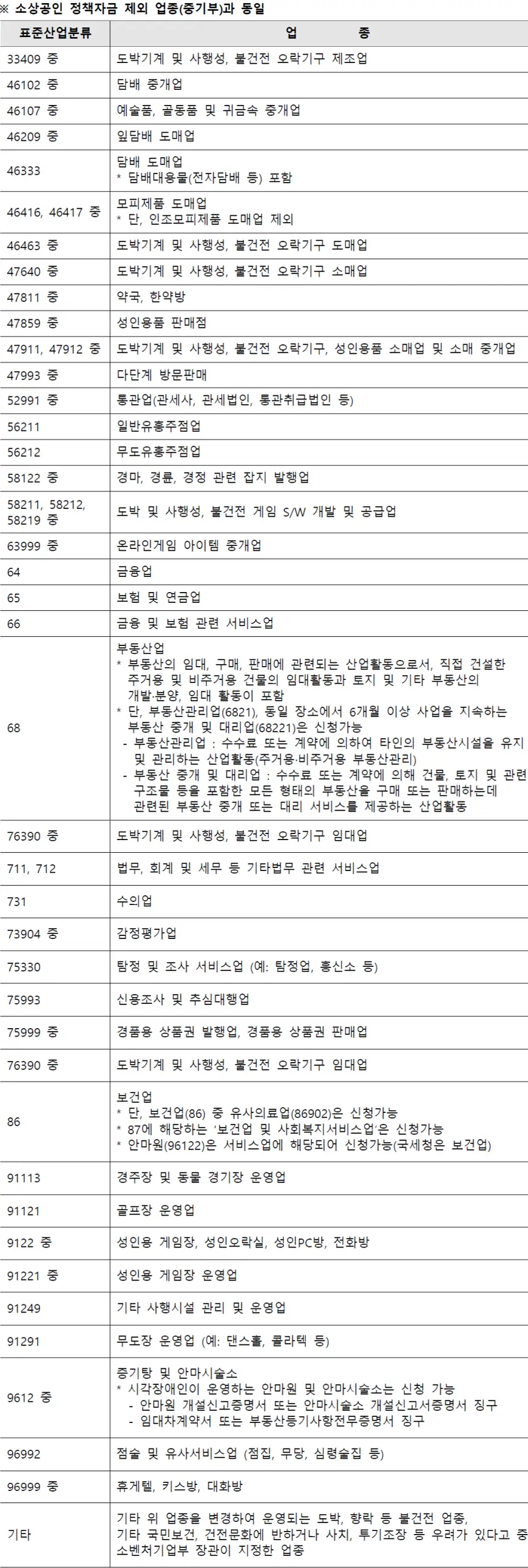 • 8. 자영업자 소상공인 대환 프로그램 제외 업종
